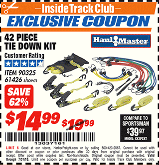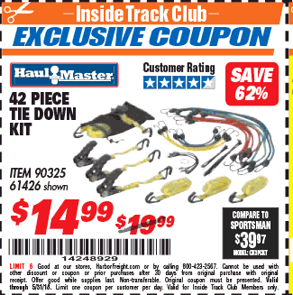 ITC 42 PIECE TIE DOWN KIT Lot No. 61426/90325 Expired: 6/30/15 - $14.99 Coupon Code: '89677454'