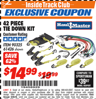 ITC 42 PIECE TIE DOWN KIT Lot No. 61426/90325 Expired: 9/30/19 - $14.99 Coupon Code: '46061886'