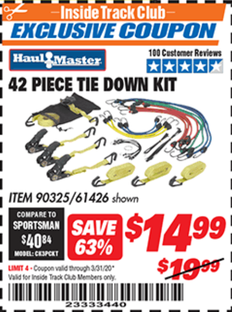 ITC 42 PIECE TIE DOWN KIT Lot No. 61426/90325 Expired: 3/31/20 - $14.99 Coupon Code: '23333440'