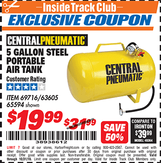 ITC 5 GALLON PORTABLE AIR TANK Lot No. 69716/63605/65594 Expired: 10/31/18 - $19.99 Coupon Code: '38938612'