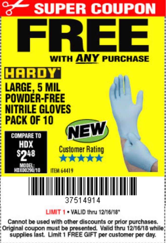FREE 5 MIL, LARGE POWDER-FREE NITRILE GLOVES PACK OF 10 Lot No. 64419 Expired: 12/16/18 - FWP Coupon Code: '37514914'