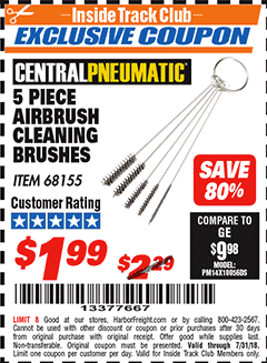 ITC 5 PIECE AIRBRUSH CLEANING BRUSHES Lot No. 68155 Expired: 7/31/18 - $1.99 Coupon Code: '13377667'