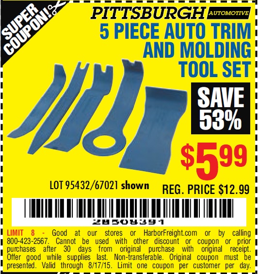 5 PIECE AUTO TRIM AND MOLDING TOOL SET Lot No. 67021/95432 Expired: 7/20/15 - $5.99 Coupon Code: '61971038'