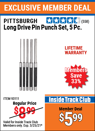 ITC 5 PIECE LONG DRIVE PIN PUNCH SET Lot No. 93111 Expired: 3/25/21 - $5.99 Coupon Code: 'n/a'
