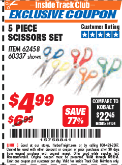 ITC 5 PIECE SCISSORS SET Lot No. 62458/60337 Expired: 5/31/18 - $4.99 Coupon Code: '15758841'