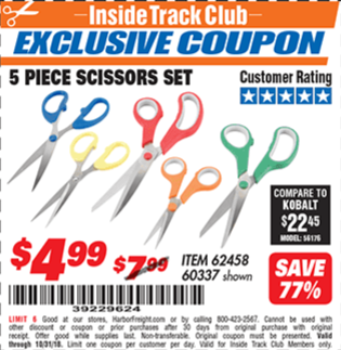 ITC 5 PIECE SCISSORS SET Lot No. 62458/60337 Expired: 10/31/18 - $4.99 Coupon Code: '39229624'