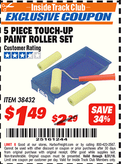 ITC 5 PIECE TOUCH-UP PAINT ROLLER SET Lot No. 38432 Expired: 9/30/17 - $1.49 Coupon Code: '20832866'