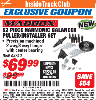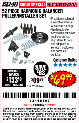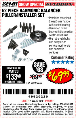 52 PIECE HARMONIC BALANCER PULLER/INSTALLER SET Lot No. 63740 Expired: 11/24/19 - $69.99 Coupon Code: '49920220'