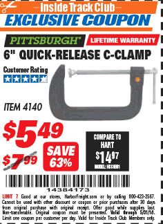 ITC 6" QUICK-RELEASE C-CLAMP Lot No. 4140 Expired: 5/31/18 - $5.49 Coupon Code: '14384173'