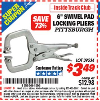 ITC 6" SWIVEL PAD LOCKING PLIERS Lot No. 39534 Expired: 4/30/16 - $3.49 Coupon Code: '15999456'