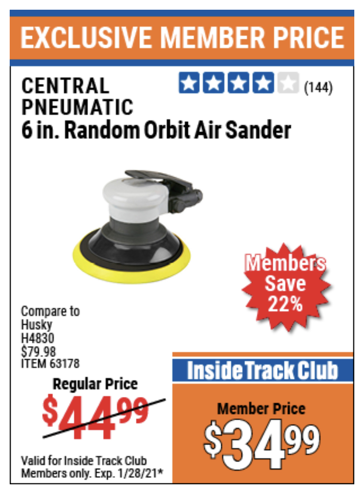 ITC 6"SANDER Lot No. 63178 Expired: 1/28/21 - $34.99 Coupon Code: 'n/a'