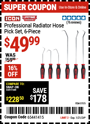 6 PIECE HOOK AND PICK SET Lot No. 93514 Expired: 1/21/24 - $49.99 Coupon Code: '65441415'