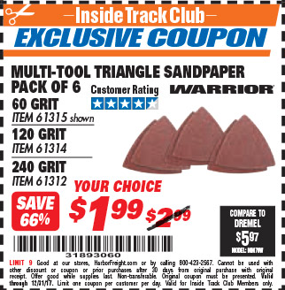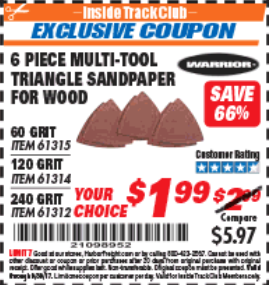 ITC 6 PIECE MULTI-TOOL TRIANGLE SANDPAPER FOR WOOD Lot No. 61312/61314/61315 Expired: 9/30/17 - $1.99 Coupon Code: '21098952'