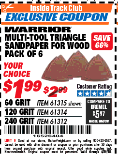 ITC 6 PIECE MULTI-TOOL TRIANGLE SANDPAPER FOR WOOD Lot No. 61312/61314/61315 Expired: 7/31/17 - $2.49 Coupon Code: '36940556'