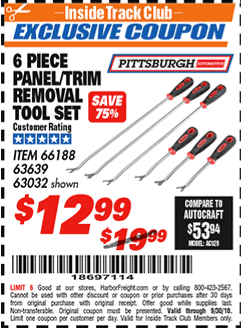 6 PIECE PANEL/TRIM REMOVAL TOOL SET Lot No. 66188 Expired: 10/24/17 - $12.99 Coupon Code: '60066498'