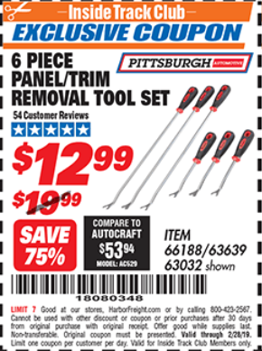ITC 6 PIECE PANEL/TRIM REMOVAL TOOL SET Lot No. 66188 Expired: 7/31/19 - $12.99 Coupon Code: '64041569'
