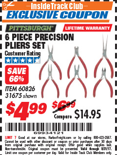 ITC 6 PIECE PRECISION PLIERS SET Lot No. 60826/31675 Expired: 8/31/17 - $4.99 Coupon Code: '69934121'
