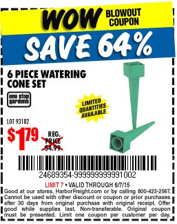 6 PIECE WATERING CONE SET Lot No. 93182 Expired: 5/17/15 - $1.79 Coupon Code: '87126567'