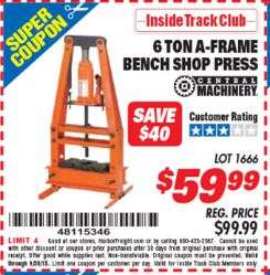 ITC 6 TON A-FRAME BENCH SHOP PRESS Lot No. 12486699 Expired: 4/30/15 - $59.99 Coupon Code: '26293896'