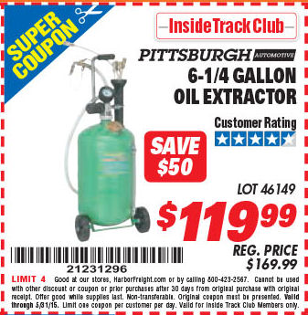 ITC 6.25 GALLON OIL EXTRACTOR Lot No. 46149 Expired: 3/31/15 - $119.99 Coupon Code: '70830547'
