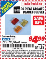 ITC 60 PIECE ATO/ATC BLADE FUSE SET Lot No. 61735/67665 Expired: 1/31/16 - $4.99 Coupon Code: '21621282'