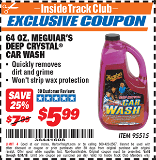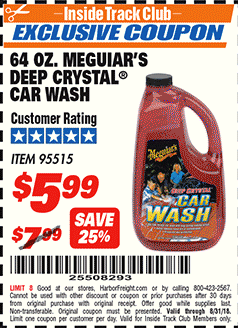 ITC 64 OZ. MEGUIARS DEEP CRYSTAL CAR WASH Lot No. 95515 Expired: 7/31/17 - $5.99 Coupon Code: '37910801'