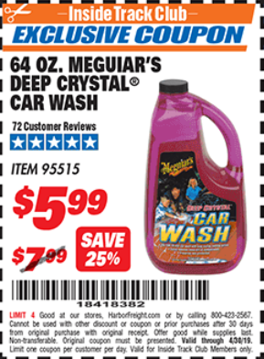 ITC 64 OZ. MEGUIARS DEEP CRYSTAL CAR WASH Lot No. 95515 Expired: 4/30/18 - $5.99 Coupon Code: '12829371'