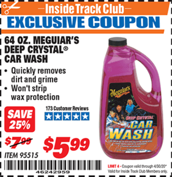ITC 64 OZ. MEGUIARS DEEP CRYSTAL CAR WASH Lot No. 95515 Expired: 4/30/20 - $5.99 Coupon Code: '46242959'