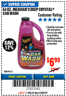 64 OZ. MEGUIARS DEEP CRYSTAL CAR WASH Lot No. 95515 Expired: 5/20/18 - $6.99 Coupon Code: '27823342'