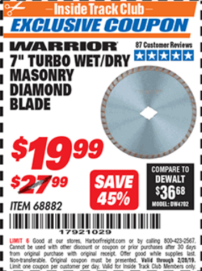 ITC 7" TURBO WET/DRY MASONRY DIAMOND BLADE Lot No. 68882 Expired: 2/28/19 - $19.99 Coupon Code: '17921029'