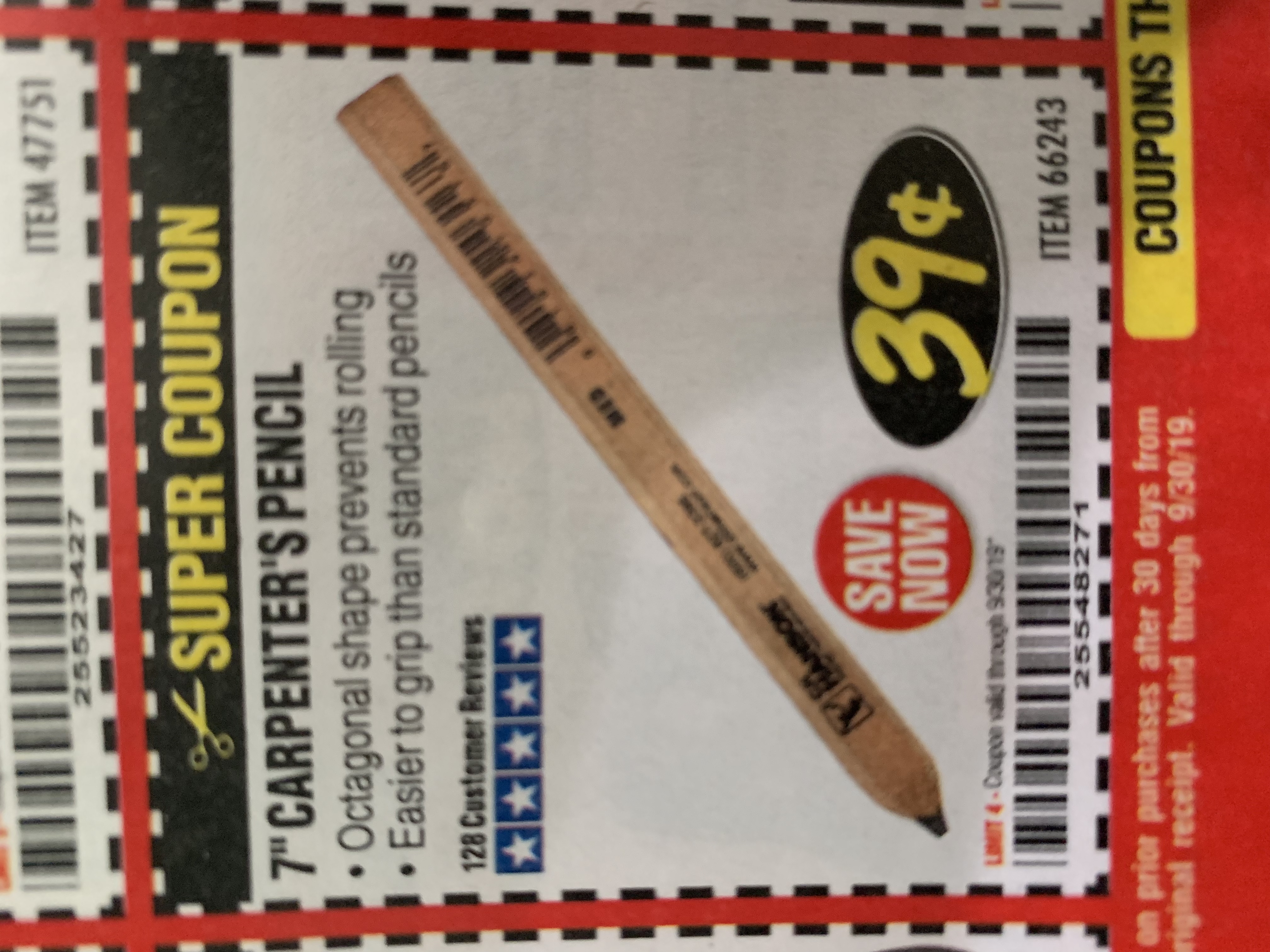 7 IN. CARPENTERS PENCIL Lot No. 66243 Expired: 10/31/19 - $0.39 Coupon Code: '68951898'