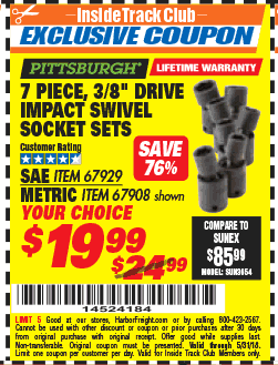 ITC 7 PIECE, 3/8" DRIVE IMPACT SWIVEL SOCKET SETS Lot No. 67929/67908 Expired: 5/31/18 - $19.99 Coupon Code: '14524184'