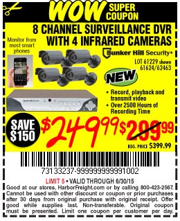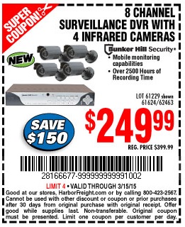 8 CHANNEL SURVEILLANCE DVR WITH 4 INFRARED CAMERAS Lot No. 68332/61229/61624/62463 Expired: 3/15/15 - $249.99 Coupon Code: '28166677'