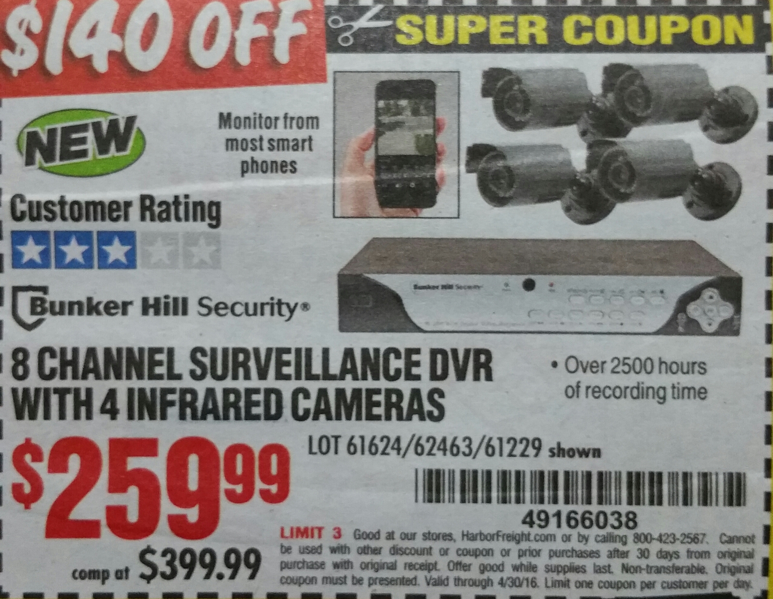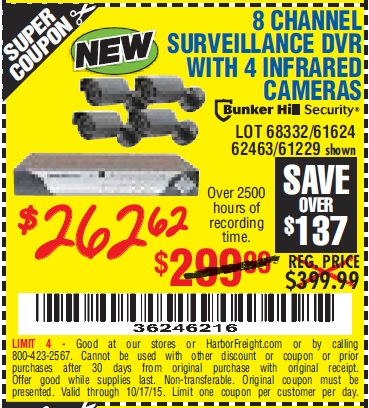 8 CHANNEL SURVEILLANCE DVR WITH 4 INFRARED CAMERAS Lot No. 68332/61229/61624/62463 Expired: 2/28/17 - $229.99 Coupon Code: '60857270'