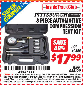 ITC 8 PIECE AUTOMOTIVE COMPRESSION TEST KIT Lot No. 69885 Expired: 5/31/15 - $17.99 Coupon Code: '21527588'