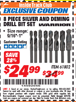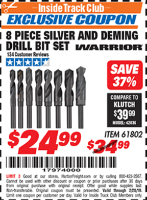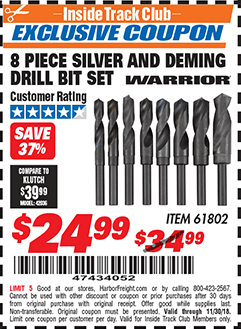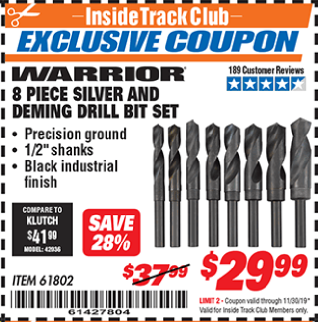 ITC 8 PIECE SILVER AND DEMING DRILL BIT SET Lot No. 61802 Expired: 11/30/19 - $29.99 Coupon Code: '61427804'