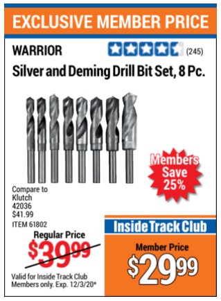 ITC 8 PIECE SILVER AND DEMING DRILL BIT SET Lot No. 61802 Expired: 12/3/20 - $29.99 Coupon Code: 'n/a'