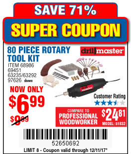 80 PIECE ROTARY TOOL KIT Lot No. 68986/97626/63292/63235 Expired: 12/11/17 - $6.99 Coupon Code: '52650692'