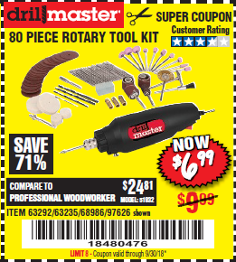 80 PIECE ROTARY TOOL KIT Lot No. 68986/97626/63292/63235 Expired: 9/30/18 - $6.99 Coupon Code: '18480476'