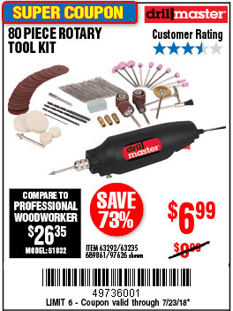 80 PIECE ROTARY TOOL KIT Lot No. 68986/97626/63292/63235 Expired: 7/23/18 - $6.99 Coupon Code: '49736001'