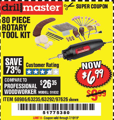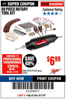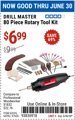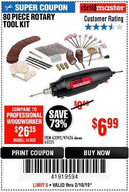 80 PIECE ROTARY TOOL KIT Lot No. 68986/97626/63292/63235 Expired: 6/30/19 - $6.99 Coupon Code: '27872766'