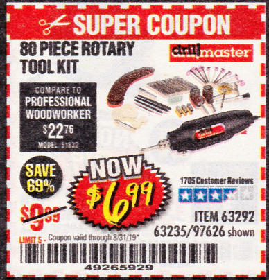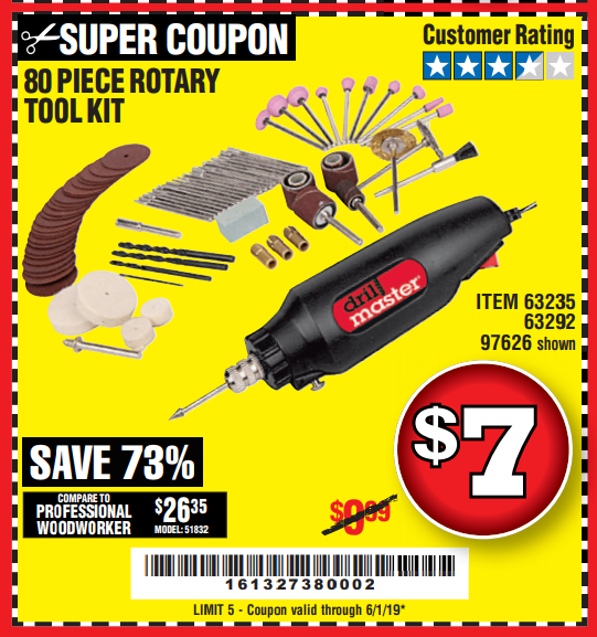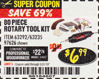 80 PIECE ROTARY TOOL KIT Lot No. 68986/97626/63292/63235 Expired: 5/31/19 - $6.99 Coupon Code: '96184607'