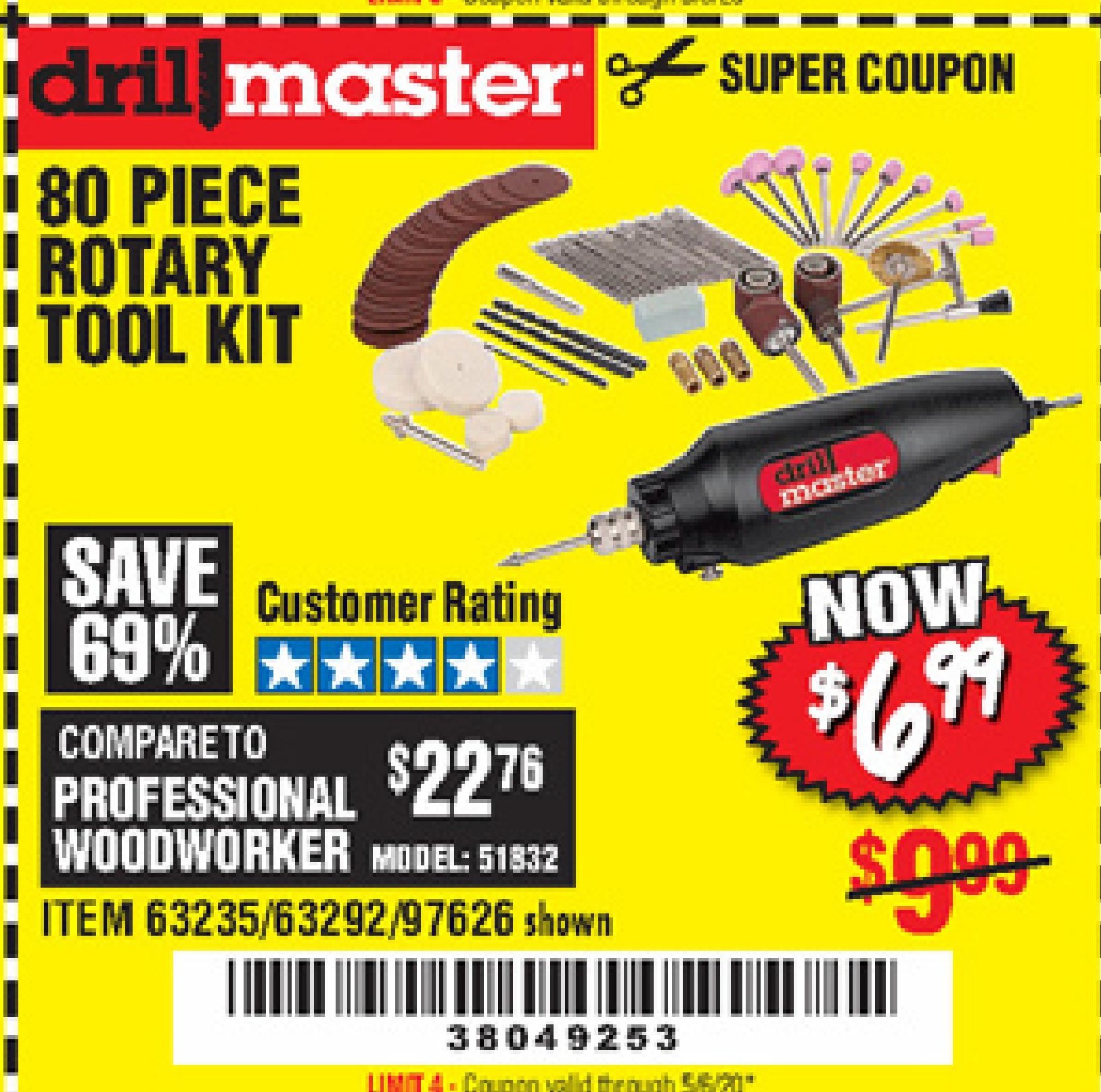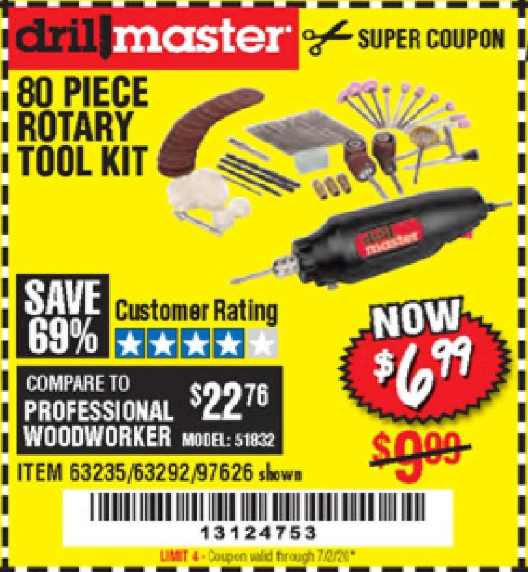 80 PIECE ROTARY TOOL KIT Lot No. 68986/97626/63292/63235 Expired: 6/30/20 - $6.99 Coupon Code: '39424083'