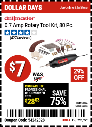 80 PIECE ROTARY TOOL KIT Lot No. 68986/97626/63292/63235 Expired: 7/31/22 - $0.07 Coupon Code: '54242328'