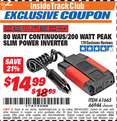 ITC 80 WATT CONTINUOUS / 200 WATT PEAK SLIM POWER INVERTER Lot No. 61665/66944 Expired: 2/28/19 - $14.99 Coupon Code: '17473298'