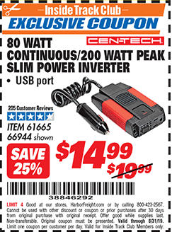 ITC 80 WATT CONTINUOUS / 200 WATT PEAK SLIM POWER INVERTER Lot No. 61665/66944 Expired: 8/31/19 - $14.99 Coupon Code: '38846292'