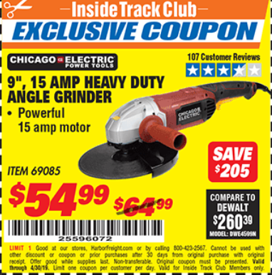 ITC 9" HEAVY DUTY ANGLE GRINDER Lot No. 69085 Expired: 7/25/17 - $54.99 Coupon Code: '29779798'