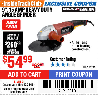 9" HEAVY DUTY ANGLE GRINDER Lot No. 69085 Expired: 12/24/19 - $54.99 Coupon Code: '21212810'