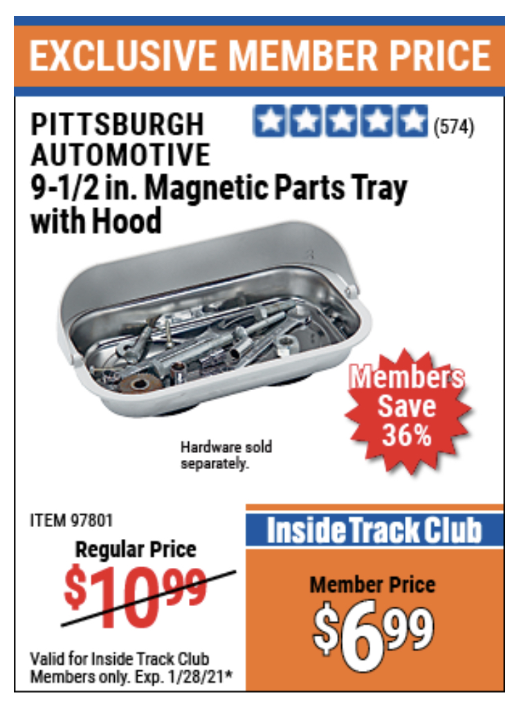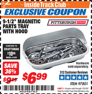 9-1/2" MAGNETIC PARTS TRAY WITH HOOD Lot No. 97801 Expired: 11/30/18 - $6.99 Coupon Code: '49308922'
