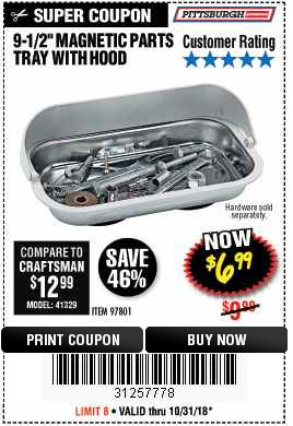 9-1/2" MAGNETIC PARTS TRAY WITH HOOD Lot No. 97801 Expired: 10/31/18 - $6.99 Coupon Code: '31257778'